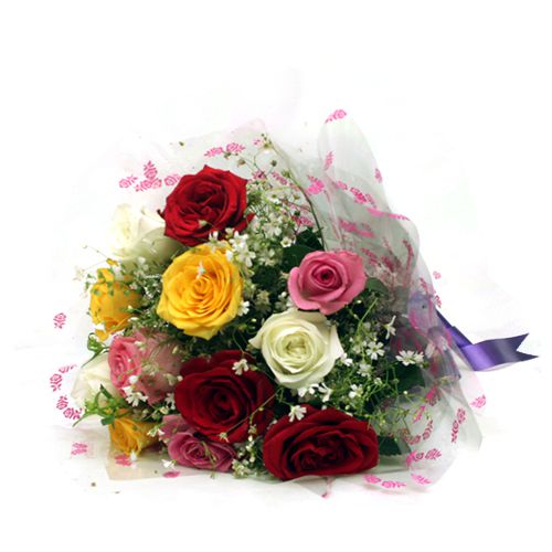 Mixed Colours bouquet that combines 12 sensational and nature’s finest roses in