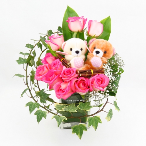 When two hearts are meant for each other, no distance is too far and no time is too long. Tell your beloved how much you love them with this alluring combo of admiring Pink Roses arranged beautifully surrounded with adorable Teddy and fresh green leaves around the bouquet in the shape of a circle.