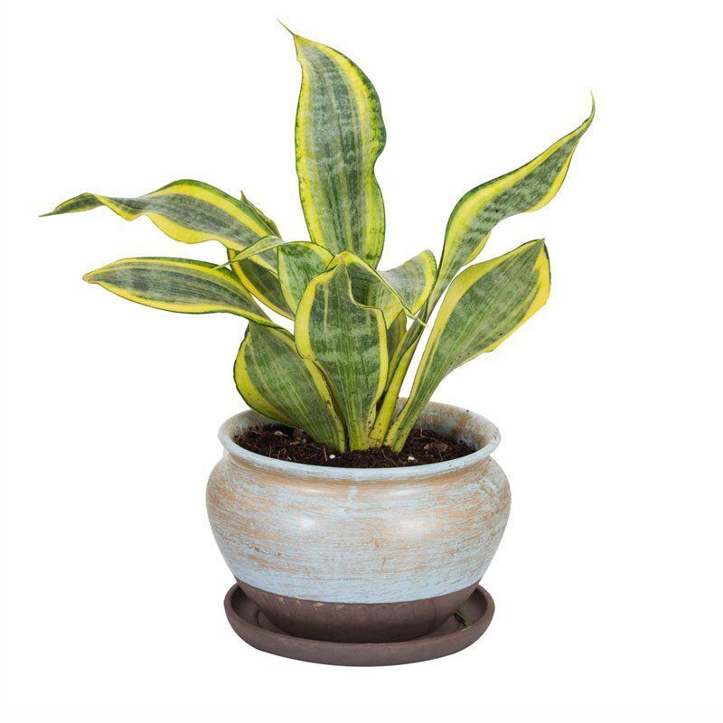Our lives are dictated by submissions and deadlines; we practically live by appointments and on either racing to finish it on time or failing to do so, we are usually drowned in a plenitude of stress. Having a Sansevieria plant is an excellent choice as it is not only a great stress buster but is also a natural air purifier and can absorb excess carbon monoxide, along with toxins such as benzene, xylene, and formaldehyde. An ideal gift for your colleague or a fellow friend, or just an appreciation to your family member, this plant helps in enhancing productivity, nurturing happy vibes, and enriching overall well-being and health. This plant comes in a grey terracotta planter with shades of dull gold over it. Packed carefully without damaging the leaves, this plant will be delivered to you at your doorstep.