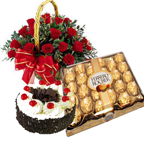 When you are with your loved one every moment becomes special and time stops for you. Add a touch of sweetness to your celebrations with this lovely arrangement of enthralling Red Roses, a delightful Cake, and a tempting pack of chocolates.