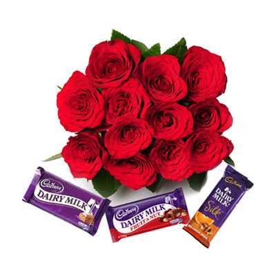 If you want to wish good luck and send greetings in the morning to make your loved ones' day lovely and memorable, then this amazing bunch of exquisite 12 Red Roses along with 3 delectable and yummy Cadbury Chocolates (38gm Cadbury Dairy Milk, 42gm Cadbury Fruit N Nuts, 65gm Cadbury Silk) is the perfect pick.
