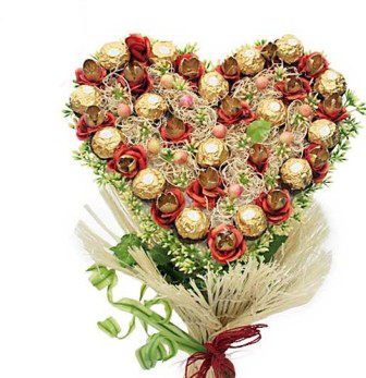 The excellence of a gift lies in its appropriateness rather than its value. is a true saying. When you think of buying a present for your loved one, then you think of something, which can give them true happiness and joy. The mesmerizing heart-shaped arrangement is beautifully adorned with chocolates, fillers, and fresh green foliage and wrapped beautifully with a lovely red ribbon.
