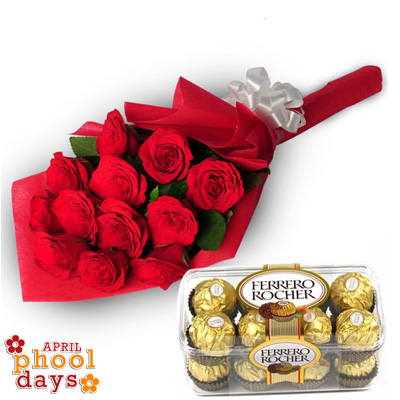 The royal and rich red color signifies prosperity and passion. It is a token of love for the two souls deeply in love. This special occasion of Phools, gift the beautiful and magical bunch of 12 red Roses tied in a designer wrapping with beautiful white ribbon and surprise your loved ones with a delightful Ferrero Rocher chocolate pack of 200 grams.