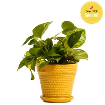 This Hybrid money plant is an excellent choice for your homes, offices, and even as a gift to your loved ones, as its elegant twisted trunk, beautiful arrow-shaped leaves, and air-purifying properties fulfill all the necessities of being a great indoor plant. Apart from its elegant foliage and air-purifying properties, it is also known to bring good luck into your home. This plant, unlike many others, requires very low maintenance and can tolerate a bit of your negligence as well. It can be gifted to your loved ones as a gesture of wishing them good fortune. Get your money plant in a beautiful bright yellow ceramic pot delivered right at your door and brighten up the dullness in your homes with optimism and a renewed sense of energy.
