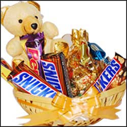 Chocolates give you lots of joy & perform the task of your own stress buster. It also commands a special place in every major occasion. Gift this amazing hamper to the special ones in your life, which consists of 3 Perk, 3 Sniker, 16 pc Ferrero Rocher with an adorable 6 inch teddy arranged beautifully in a Kashmiri basket & adorned with a normal ribbon.