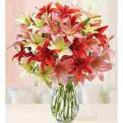 Be it a birthday, Mother's Day, anniversary, New Year, or even a simple thank you note, nothing says it as honestly and as beautifully as a vase of magnificent lilies. Our bouquet features 6 stems each of fully bloomed red, white, and pink Asiatic lilies. There are a total of 12 lilies each of red, white, and pink color, bringing the whole bouquet to a total of 36 of the most vibrant lilies arranged tastefully in a shiny glass vase. So be it any occasion, don't fail to make a mark on your loved ones' hearts with our stellar Lilies Fusion bouquet!