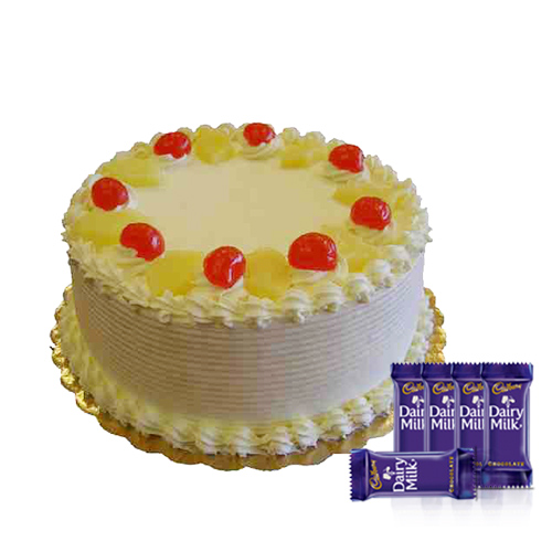 Half Kg Pineapple Cake along with 5 Dairy Milk of 13 Gms each.