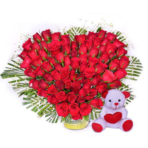 Send this cute and heart-touching Valentine's floral gift combo of 50 red roses along with a cute 6-inch teddy bear to your loved ones & get unconditional love from them.